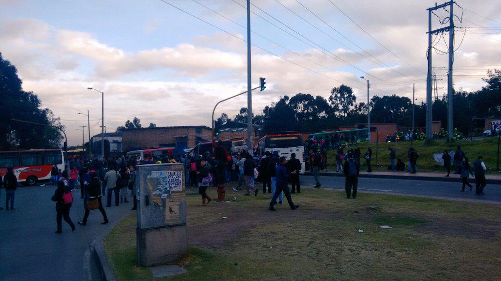 No hay paso en Portal Usme por bloqueo de buses TPC. Retornamos en Est Santa Lucía. Retrasos operacionales.