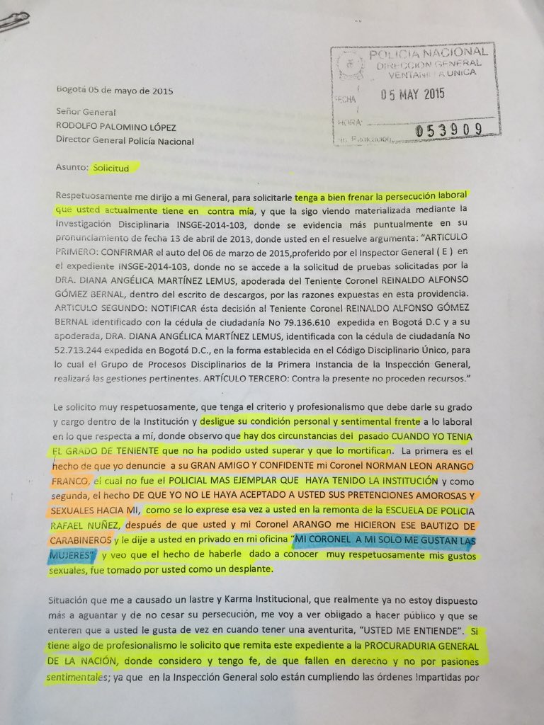 Esta es la carta del coronel Reinaldo Gómez que desata escándalo en la policía.