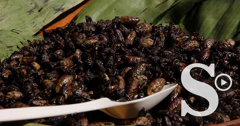 que intenta conservar su tradición de comer arañas fritas y saltamontes