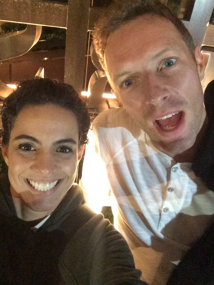 Pacho Cardona twitteó: Hoy la gallinita más famosa es @pamelaospina de @Radioacktiva_ al lado de #ChrisMartin de @coldplay #EsaEsMiNiña