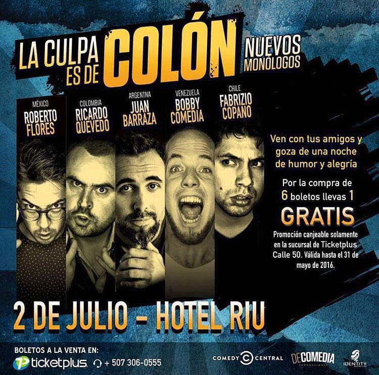 Ricardo Quevedo twitteó: Si están en Panamá o conocen a alguien allá, INVÍTENLO A ESTO, estaremos con #LaCulpaEsDeColón en PANAMÁ 2 de julio