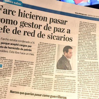 Gestor de paz-sicario de las Farc. Interesante figura.